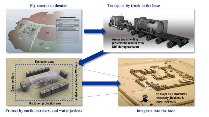 Mi-mars 2020, le Pentagone annonçait confier à 3 entreprises américaines les études pour la conception d’un réacteur nucléaire miniaturisé destiné à être projeté et, potentiellement, alimenter en énergie électrique les bases déportées des forces armées américaines. Les craintes de voir un réacteur nucléaire s’implanter au sein d’une base américaine, et sur un sol étranger, ont évidemment levé des objections et des interrogations, notamment concernant la sécurité du dispositif face à une attaque. Les exemples des catastrophes de Three Miles Island, Tchernobyl et Fukushima, font naturellement craindre qu’une scénario d’emballement du réacteur qui entrerait en fusion non-controllée et finissait par faire fondre son enceinte de confinement ne survienne. D’autant qu’il est impossible de concevoir une enceinte de contention comparable à celles des centrales civiles si le dispositif devait être projetable.